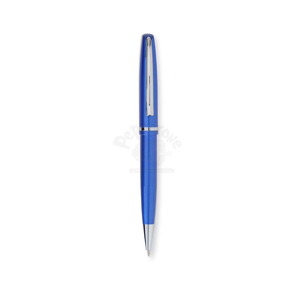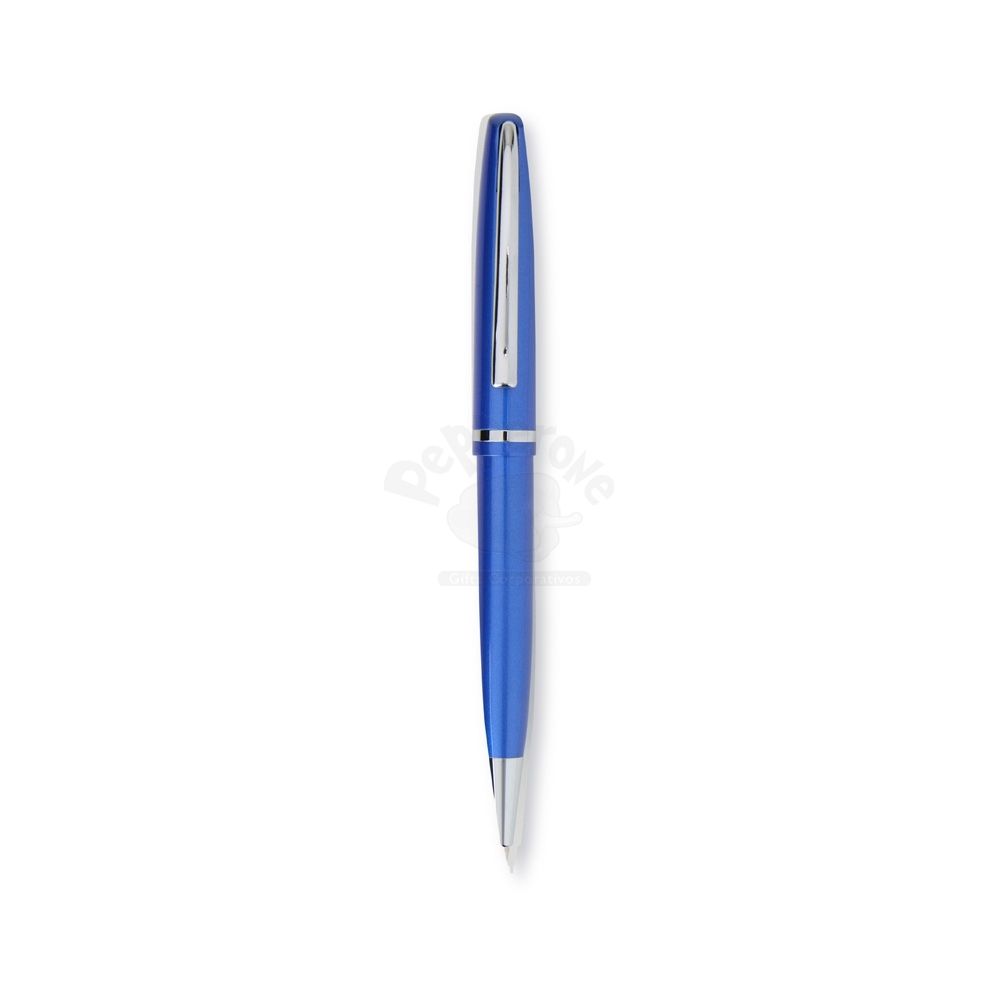 Conjunto de caneta e lapiseira metálicas em estojo metal. Caneta e lapiseira possuem acabamento brilhante, carga esferográfica azul de 1.0mm e acionamento por rotação.