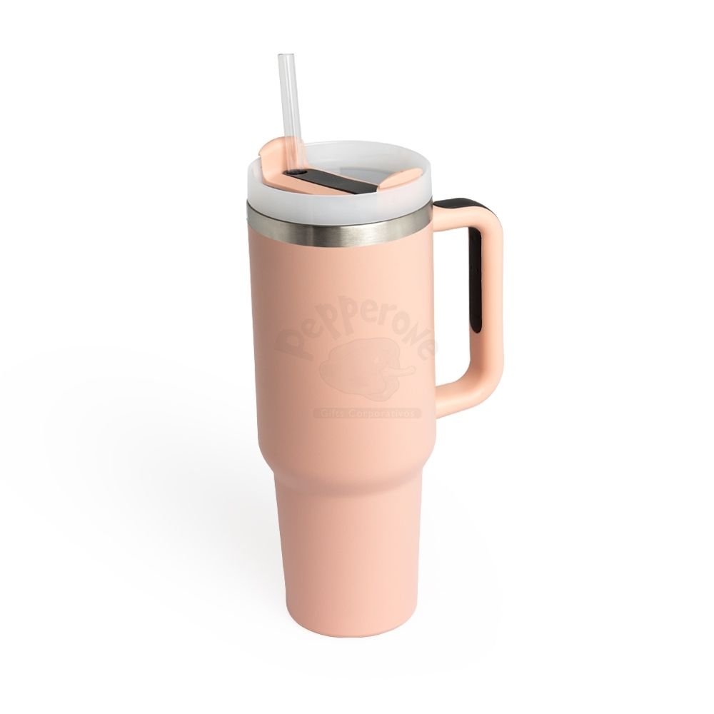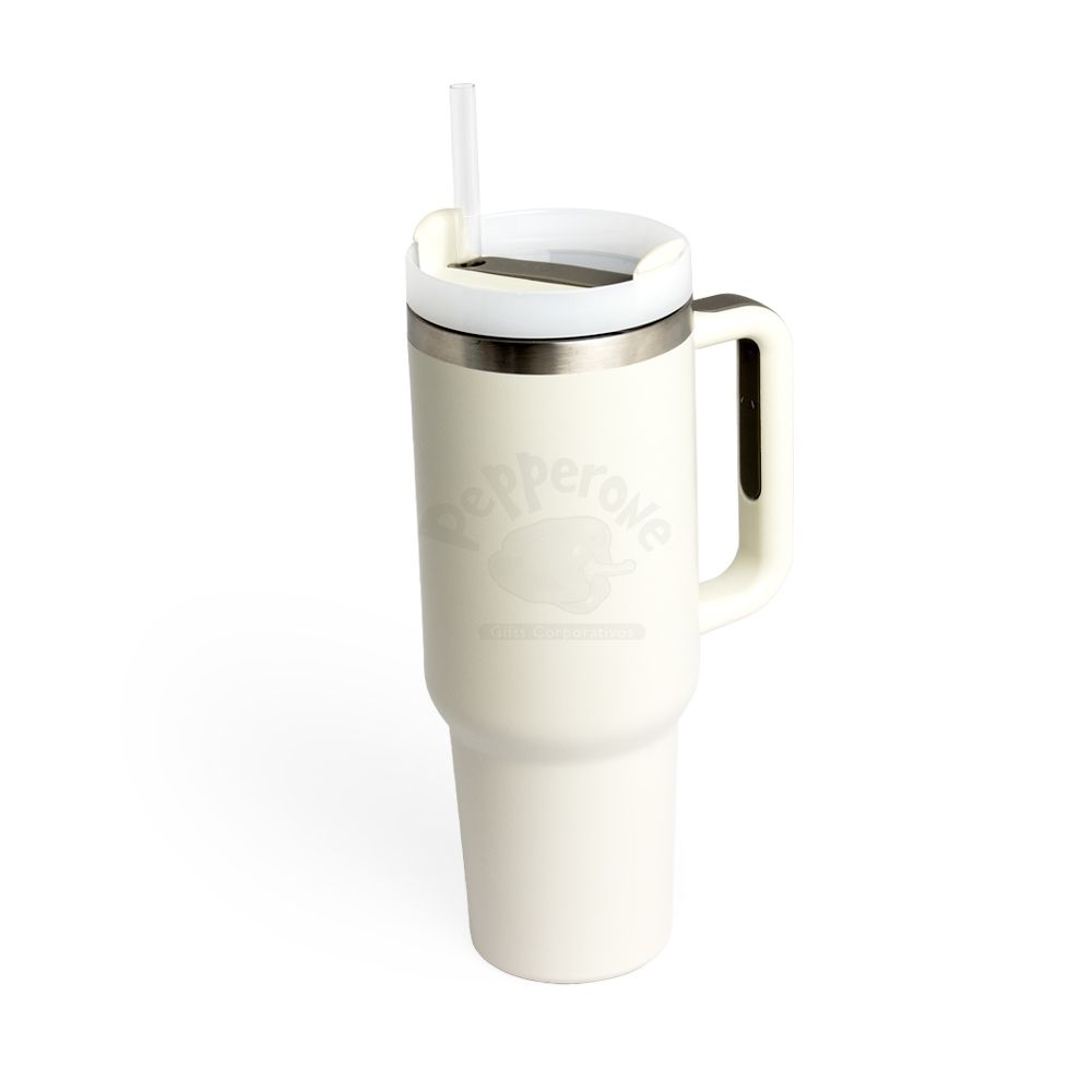 Caneca térmica com capacidade de 1,2 litros feita em inox 304 com parede dupla, contém tampa acrílica rosqueável com acesso para canudo e pegador plástico com aderência emborrachada. Acompanha canudo plástico.