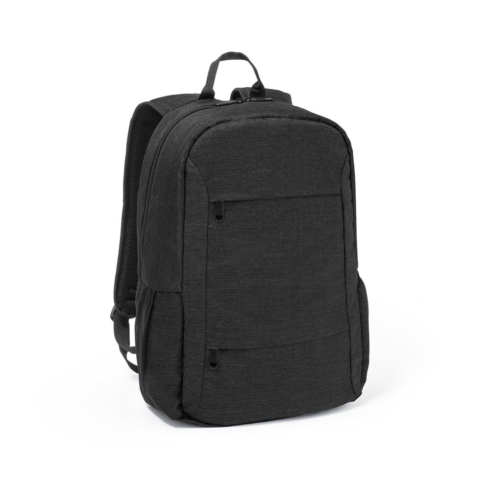 Mochila para notebook portátil em 300D poliéster reciclado (100% rPET) e forro em 210D poliéster reciclado (100% rPET). Compartimento principal almofadado, com divisória principal para portátil até 15.6" e tablet até 10.1". Mochila com 2 bolsos frontais com zíper e 2 bolsos laterais com detalhe em tela mesh. Parte posterior e alças almofadadas, ajustáveis para os ombros. A parte posterior e alças almofadadas incorporam uma alça para trolley em caso de necessidade. Design idealizado para assegurar uma excelente arrumação nas suas viagens de trabalho ou lazer. Capacidade até 18 L.