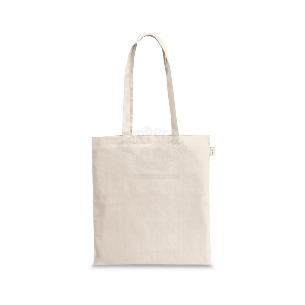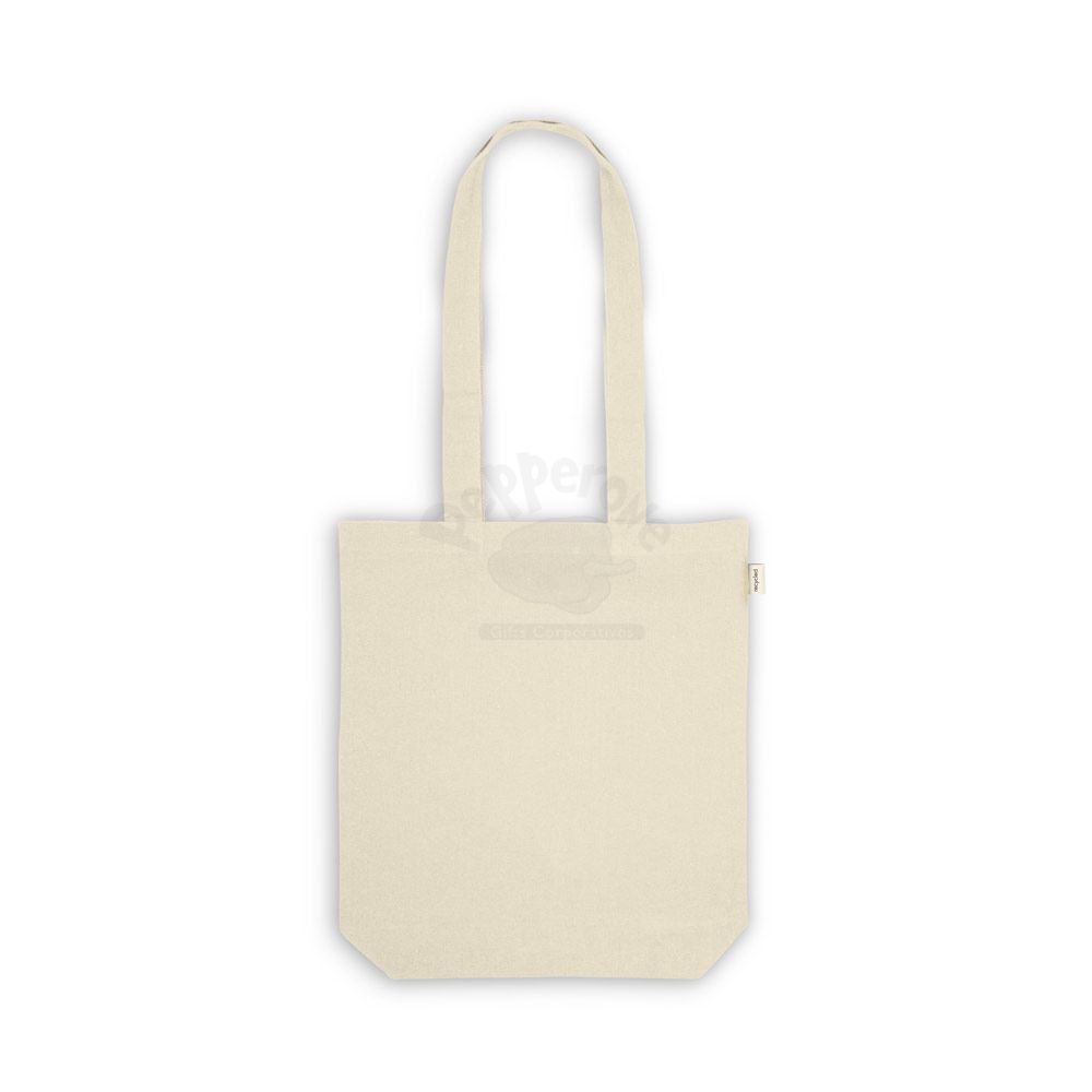 Sacola 100% algodão reciclado (140 g/m²) com alças de 75 cm.
