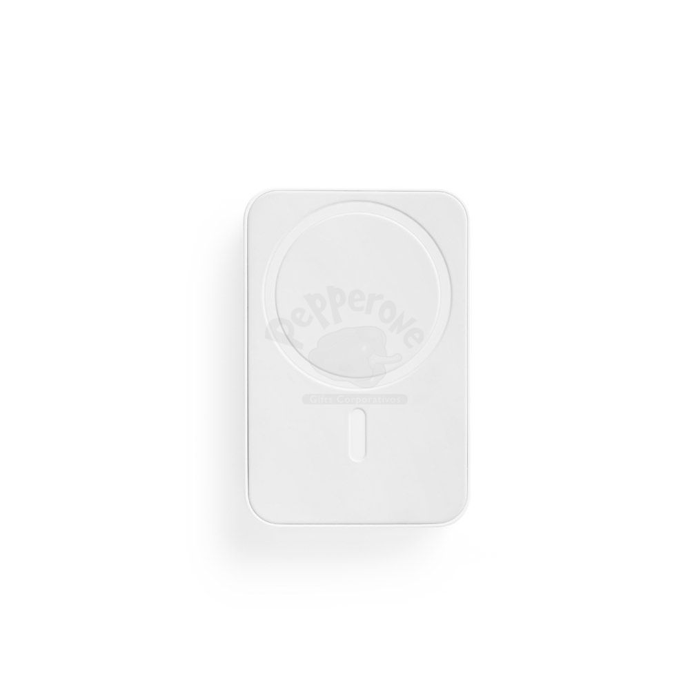 Bateria portátil em ABS 100% reciclado. Tem capacidade de 5.000 mAh e tempo de vida ≥ 300 ciclos. Esta bateria portátil torna-se muito prática para o dia a dia, uma vez que permite, através do seu magnetismo, prender-se atrás dos dispositivos móveis. Incluso grip magnético extra para ser colocado nos smartphones que não têm magnetismo. Possui entrada/saída USB-C e potência máxima de 15W para carregamento rápido sem fios. Compatível com smartphones com tecnologia de carregamento sem fios. Incluso cabo USB-C para carregamento rápido. Fornecido em caixa presente de papel kraft reciclado.