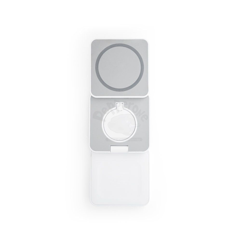 Carregador magnético wireless super rápido dobrável em ABS 100% reciclado, permite carregar três dispositivos simultaneamente: celular 15W, fones de ouvido 5W e smartwatch 2,5W, com tecnologia de carregamento sem fios. Incluso um grip magnético extra para ser colocado nos smartphones que não tenham e um cabo de carregamento rápido USB-C. Ideal para usar no escritório e levar em viagem. O produto também pode ser utilizado como suporte. Fornecida em caixa presente de papel kraft.