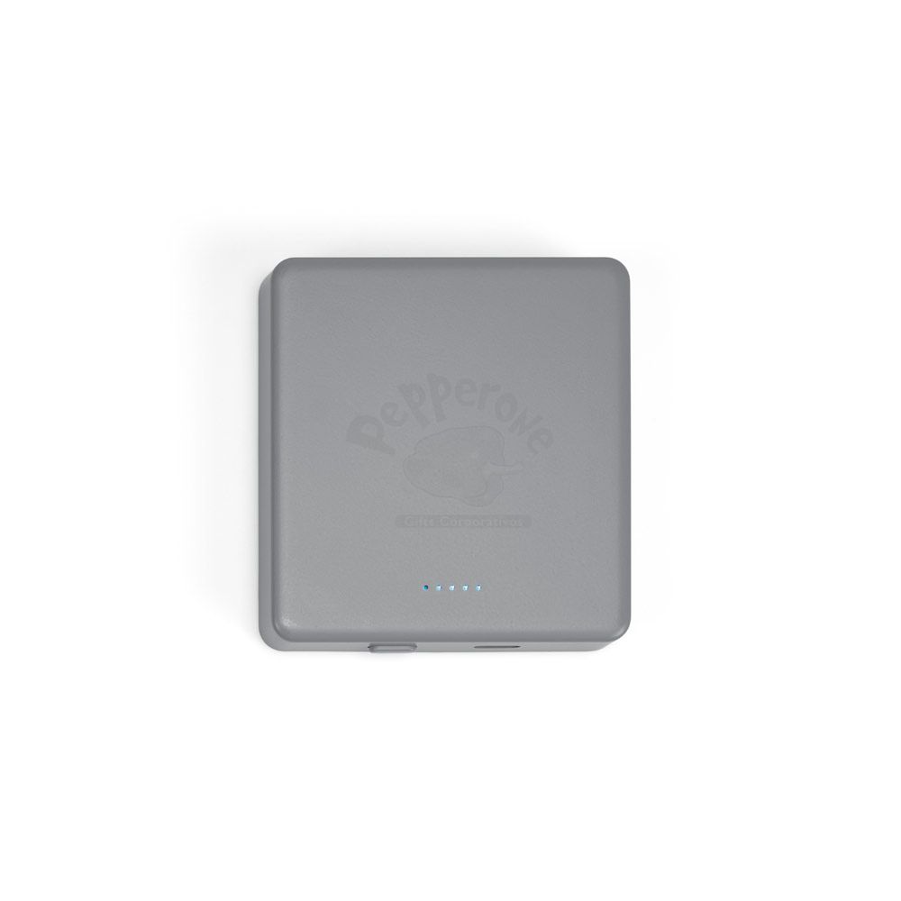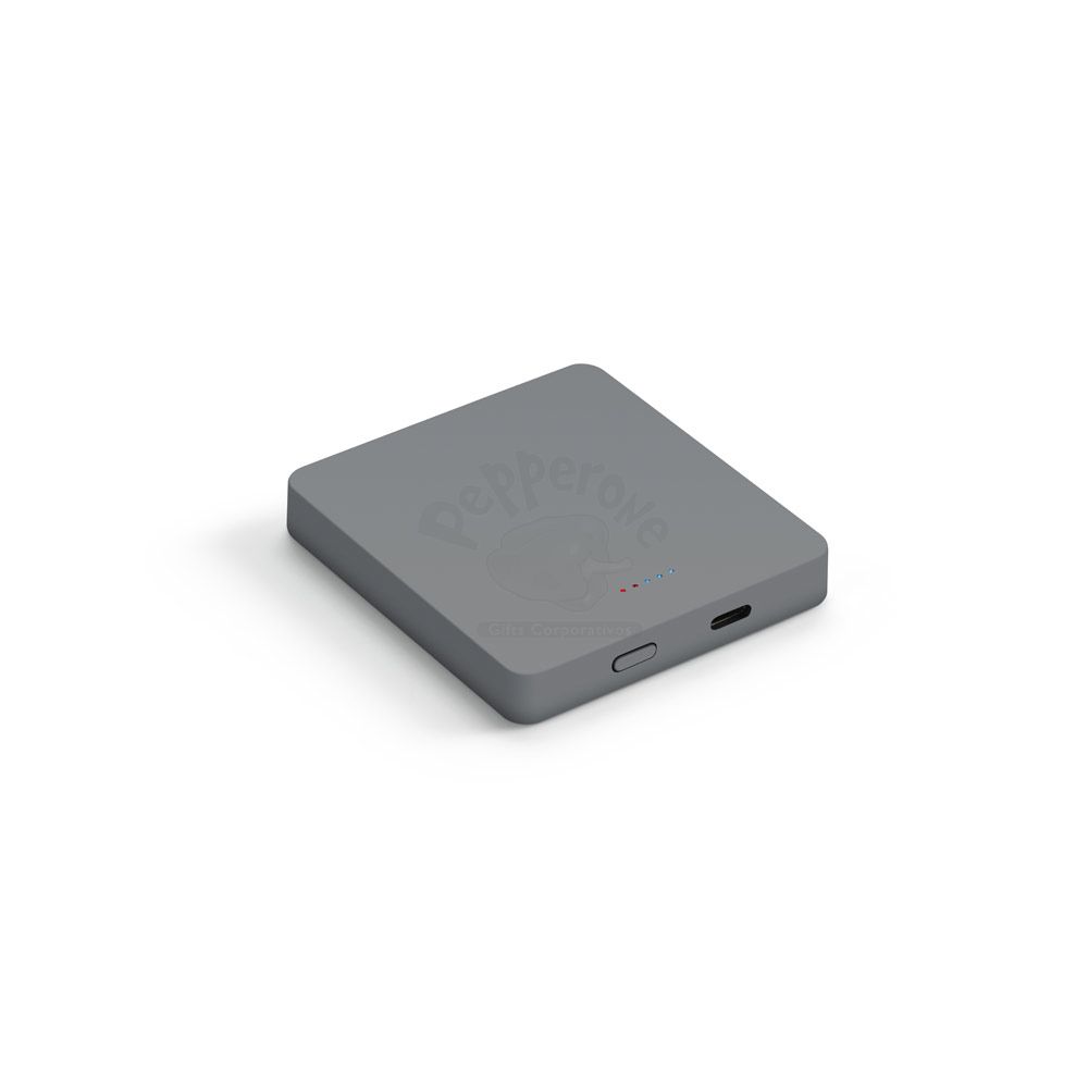 Bateria portátil de carregamento rápido em ABS 100% reciclado com acabamento em mate. A bateria leve em lítio e com design slim, tem uma capacidade de 5.000 mAh e tempo de vida ≥ 300 ciclos. Esta bateria portátil torna-se muito prática para o dia a dia uma vez que permite, através do seu magnetismo, prender atrás dos smartphones ou capas com este sistema. Possui entrada/saída USB-C e potência máxima de 15W para carregamento rápido sem fios. Compatível com smartphones com tecnologia de carregamento sem fios. Incluso cabo USB-C para carregamento rápido. Fornecido em caixa presente de papel kraft.