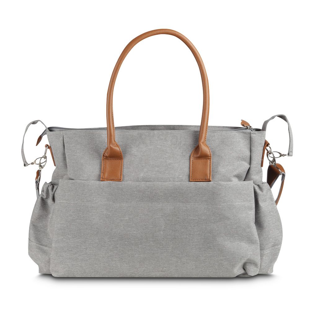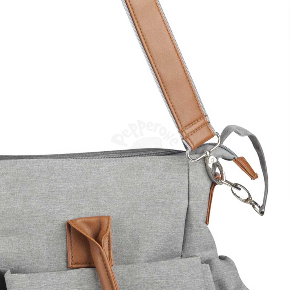Bolsa funcional em poliéster e couro sintético, compartimento com divisórias, alça de ombro e mão, 4 bolsos laterais.