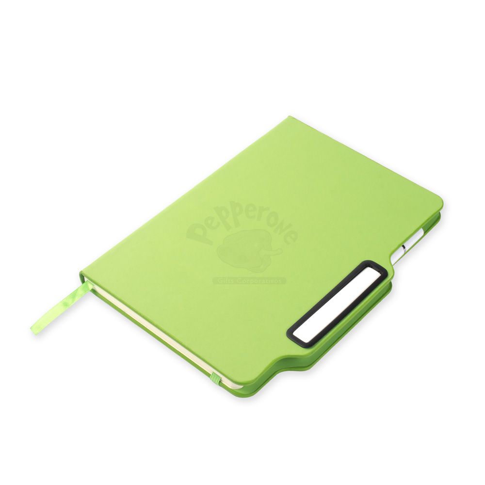 Caderno de anotações com suporte para caneta, capa dura em PU, miolo 80 folhas pautadas na cor bege. Acompanha caneta/lápis infinito (ponta dupla) feito em corpo plástico, sem necessidade de apontar.