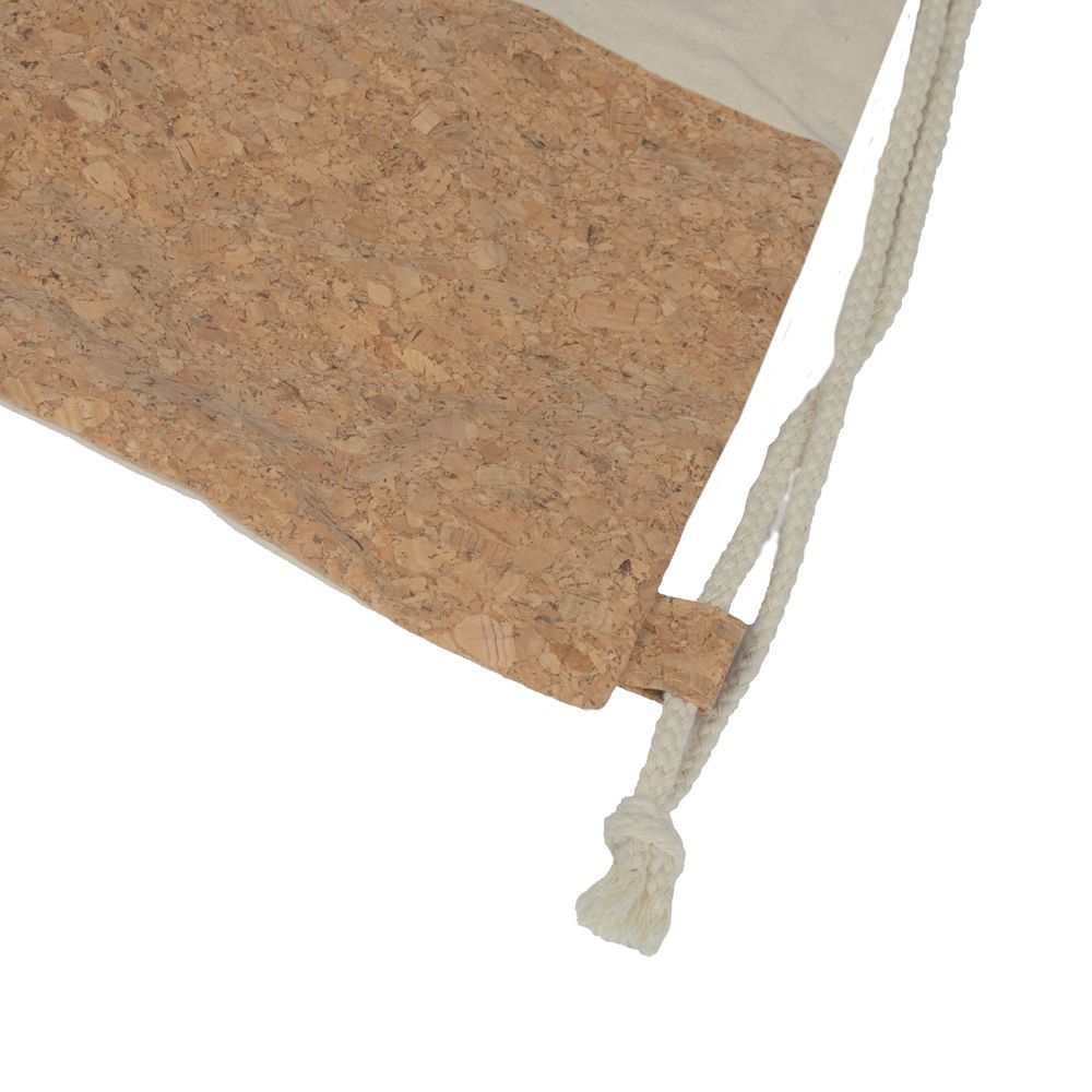 Bolsa em algodão cru com detalhe em cortiça, alça dupla para colocar nas costas.