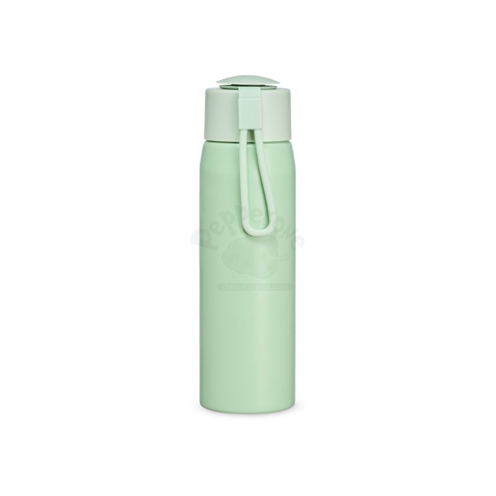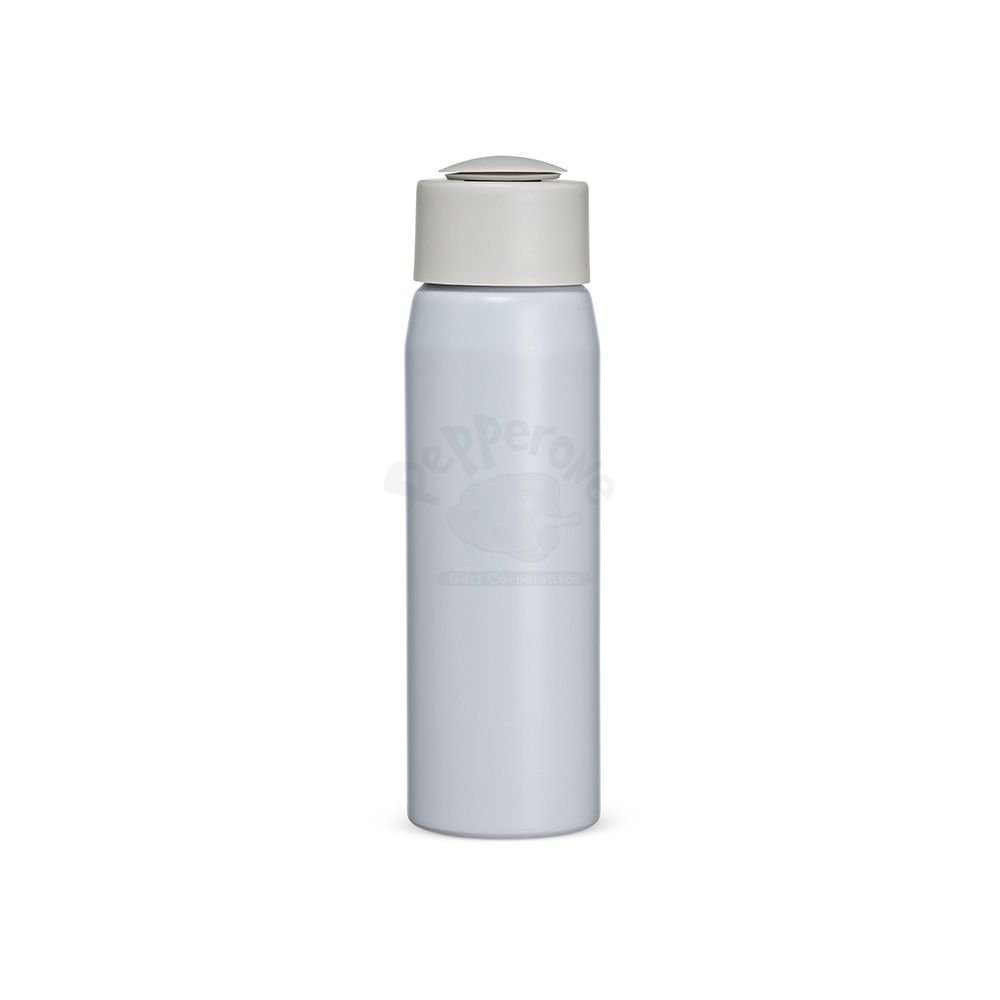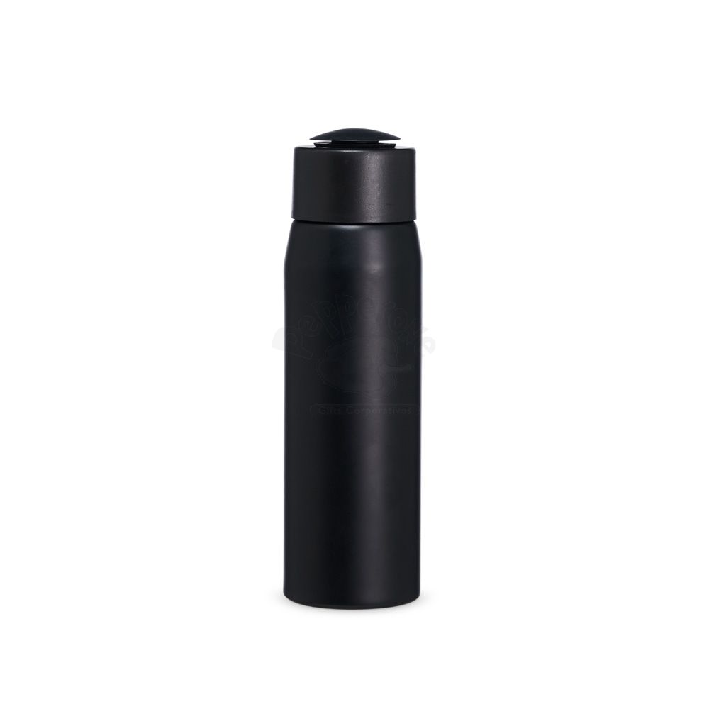 Garrafa alumínio 600ml com acabamento fosco. Possui tampa rosqueável com alça para transporte.