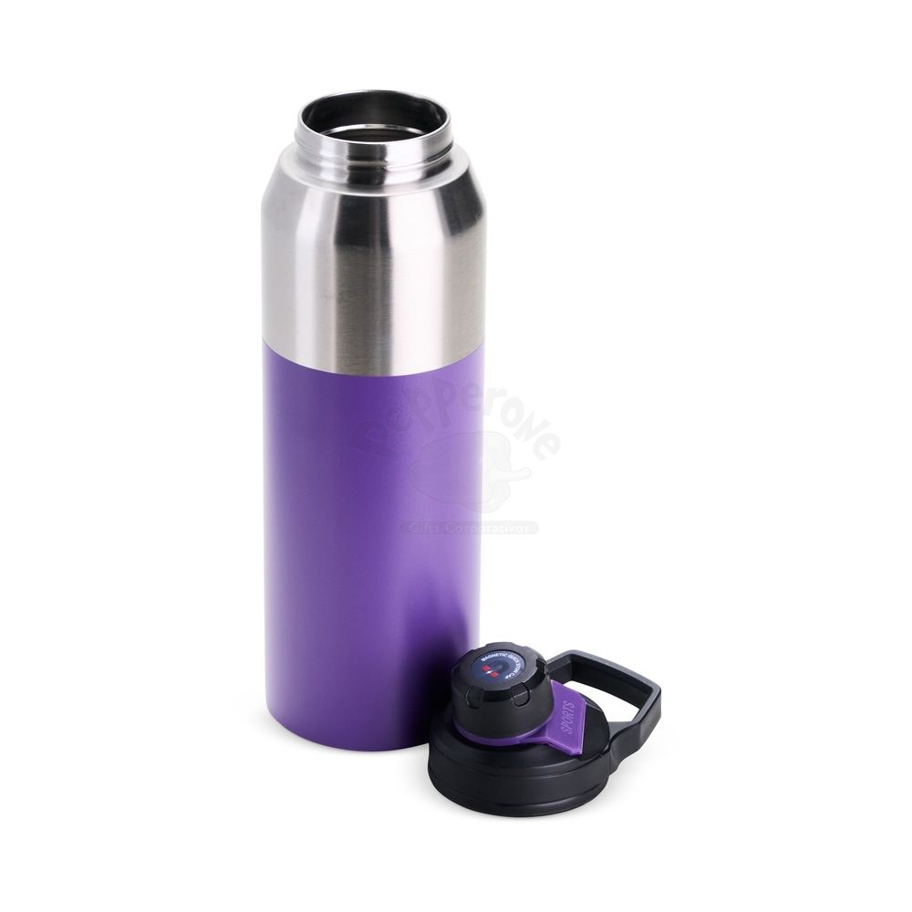 Com capacidade para 1l, feita de aço inoxidável com parede dupla e alça integrada, esta garrafa se destaca por sua tampa protetora magnética, que ao abri-lá fica firme no lugar, garantindo mais comodidade mesmo em movimento.