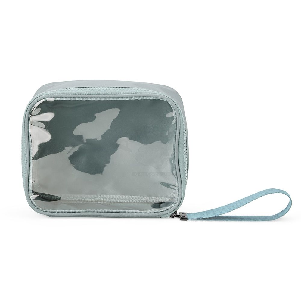 Nécessaire confeccionada em nylon, com frente em visor transparente, fechamento por zíper e alça superior. Inclui também uma alça de transporte em nylon.