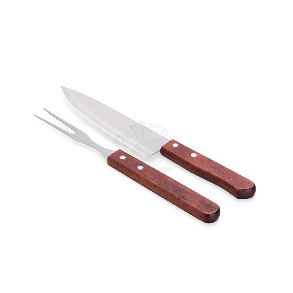 Aproveite seus momentos de churrasco com o Kit Churrasco 2 Peças. Este conjunto vem em um estojo de papel kraft. O kit inclui uma faca de 7 polegadas e um garfo, ambos em inox com cabos de madeira. Um churrasco de respeito merece utensílios de qualidade!