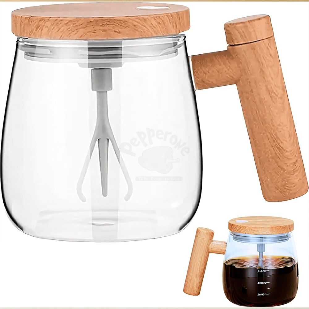 Caneca em vidro borossilicato com mixer e tampa de bambu, capacidade de 400ml, incluso 2 pilhas AAA.