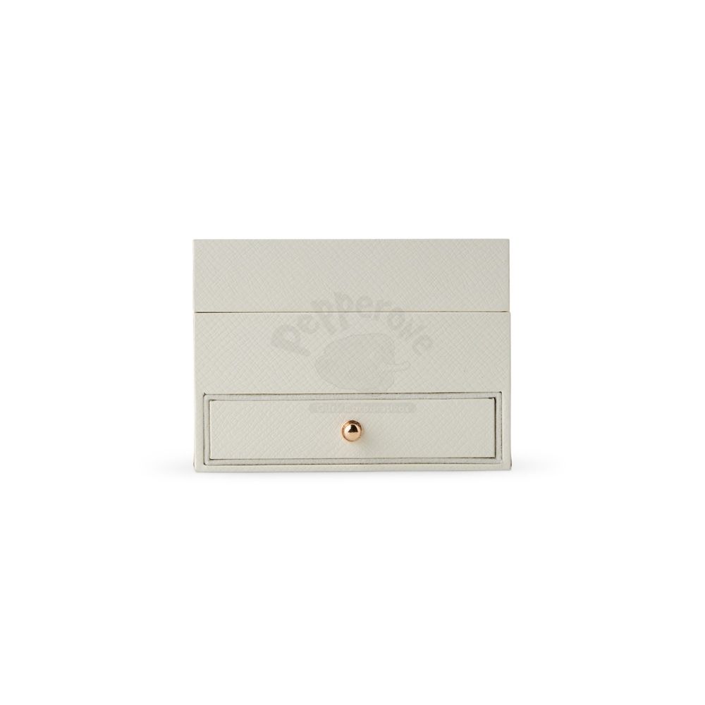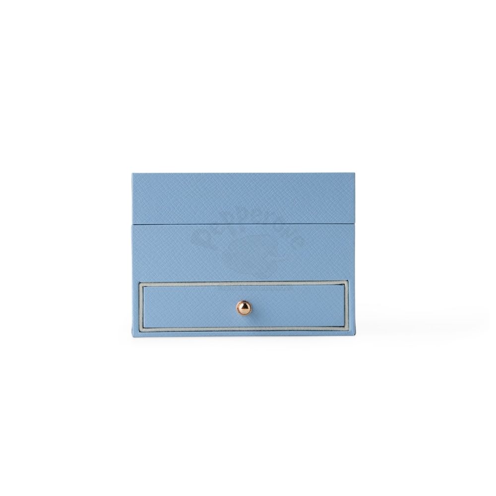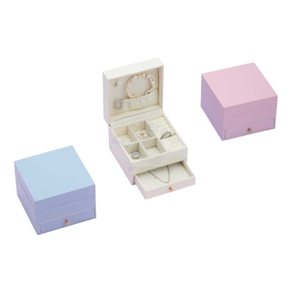 Porta-joias de couro sintético com revestimento aveludado. Possui gaveta e compartimentos internos para anéis, brincos, pulseiras e colares.