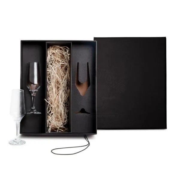 Jogo com 2 taças de vidro para Champagne, com espaço para a garrafa grande (NÃO ACOMPANHA GARRAFA). Capacidade: 186ml.
