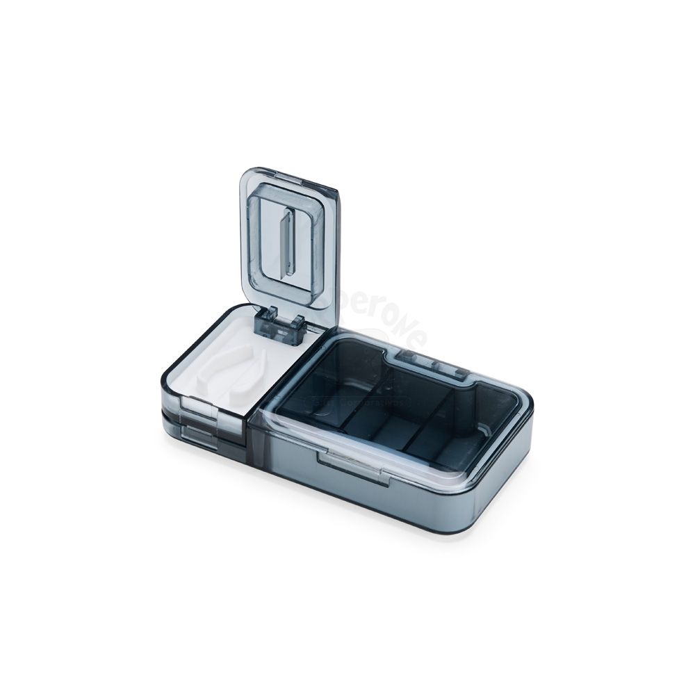 Um porta comprimidos multifuncional sob medida para as necessidades diárias de uma rotina de medicação. Feita em plástico, conta com três compartimentos principais, um com três divisórias com capacidade aproximada de 10 ml cada. As outras duas repartições, por sua vez, apresentam um cortador de comprimidos na parte superior e um triturador localizado na interior, ambos com acionamento manual prático e rápido. Seu tamanho compacto garante praticidade para levar o porta comprimidos para qualquer lugar. Acompanha uma pinça com ponta de escova para a limpeza.