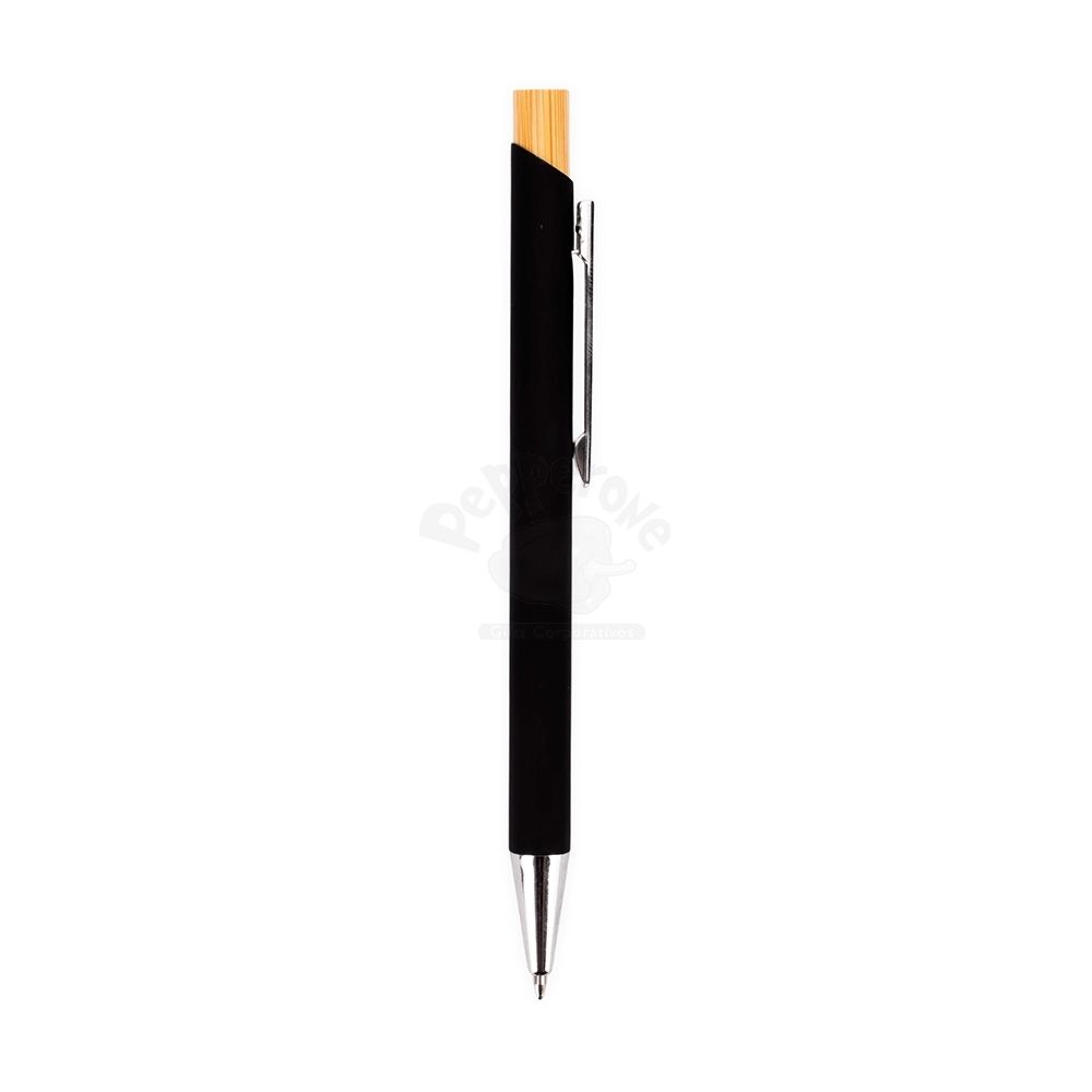 Caneta esferográfica com carga azul de 1.0mm. Possui construção metálica e acionamento por clique em bambu, o que proporciona uma pegada leve e maior precisão durante o uso.