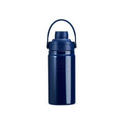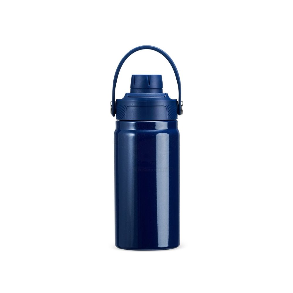 Garrafa térmica em inox com capacidade para até 400ml. Apresenta estrutura de parede dupla e vedação a vácuo, que mantém a temperatura de líquidos por mais tempo sem transferência para o exterior. Possui tampa plástica rosqueável com protetor de o bocal e alça fixa para transporte.