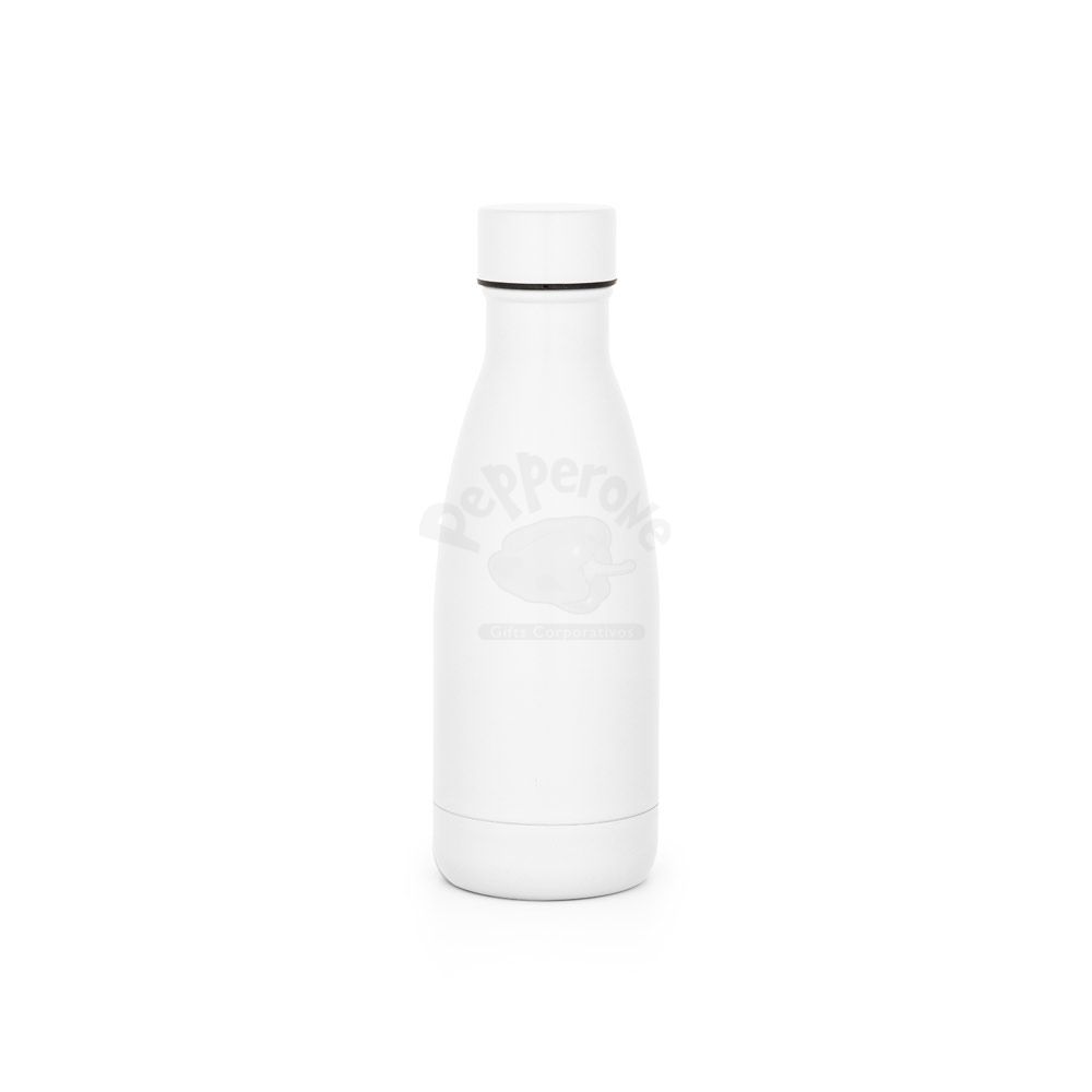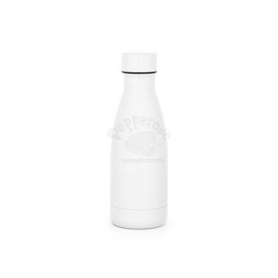 Garrafa térmica em aço inox 90% reciclado com parede dupla, isolada a vácuo e acabamento em mate. A tampa de rosca é à prova de vazamentos. Capacidade até 400 mL.