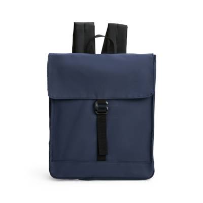 Mochila em couro sintético impermeável com capacidade de até 16 litros. Apresenta compartimento interno com bolso para notebooks de até 13 polegadas. Possui duas alças para as costas, alça de mão e engate posterior para mala de viagem.