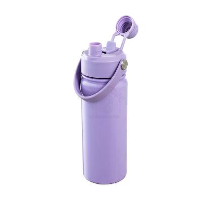 Garrafa térmica em aço inox 304 e capacidade para até 600ml. Apresenta estrutura de parede dupla e vedação a vácuo, oferecendo a conservação da temperatura de líquidos por mais tempo. Possui tampa rosqueável feita em plástico com proteção para o bocal, bico flip, canudo interno removível e alça fixa para transporte.