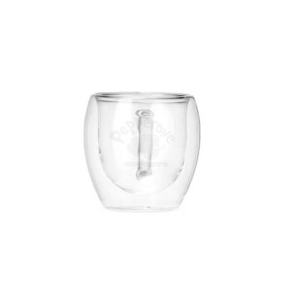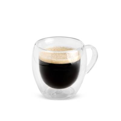 Caneca de vidro borossilicato com capacidade máxima de 250ml. Conta com estrutura de parede dupla que impede o contato da temperatura do líquido na parede externa da caneca.