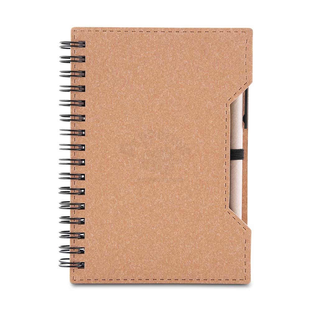 Caderno A6 capa em papelão reciclado com caneta