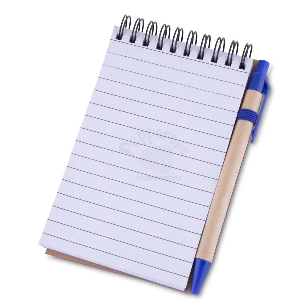 Mini Caderno com capa em papel kraft, com 70 folhas pautadas e blocos adesivos (sticky notes) coloridos. Acompanha disco rotativo na capa com os dias da semana e caneta produzida em papelão reciclado com detalhes em plástico e escrita em azul.