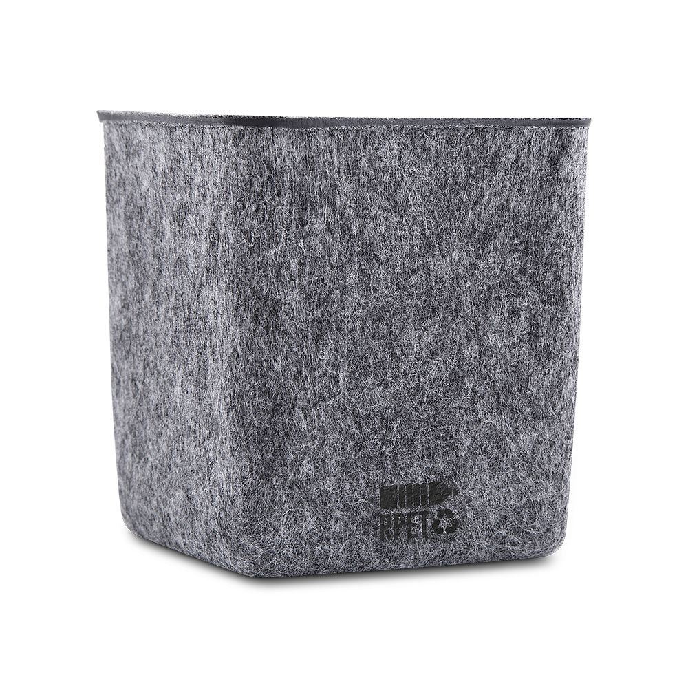 Porta-objetos e celular em feltro reciclado com detalhe em bambu. Prático e versátil, ideal para organizar canetas, lápis, marcadores e manter a mesa de escritório sempre funcional e elegante.