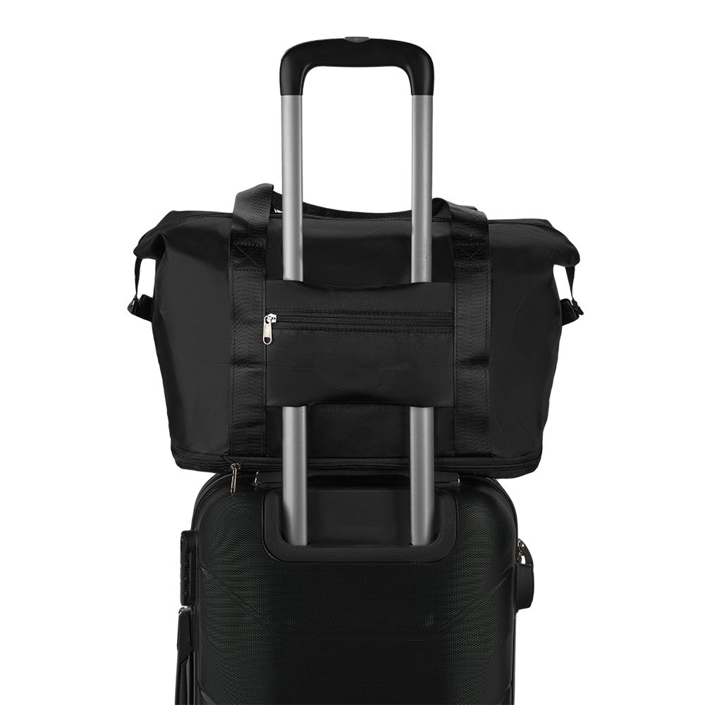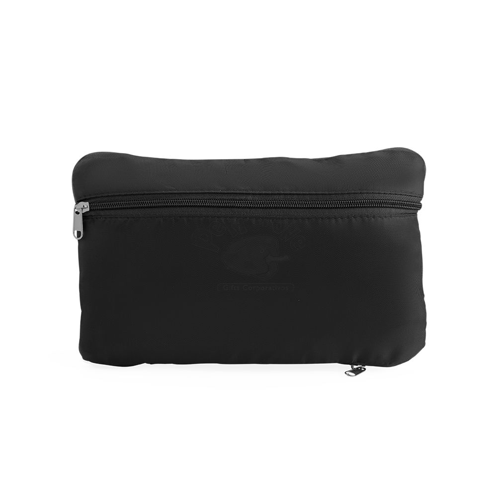 Bolsa expansível em poliéster impermeável com capacidade de até 30 litros, obtida a partir da abertura do compartimento inferior, com fechamento em zíper. Possui um par de alças em nylon, dois compartimentos internos, incluindo bolso com espaço para encaixe em alça de malas. Pode ser dobrada para facilitar o transporte quando não estiver em uso.