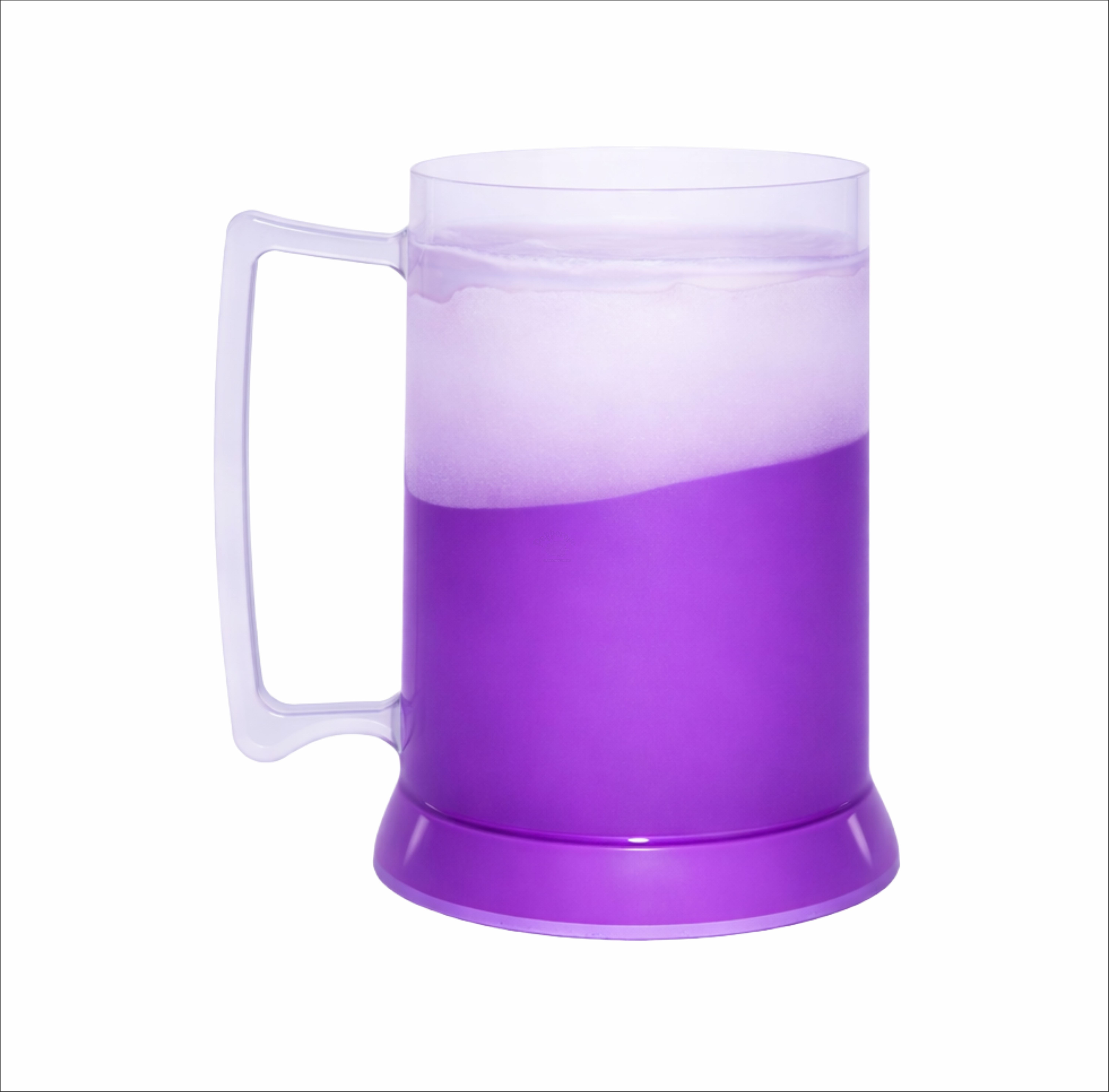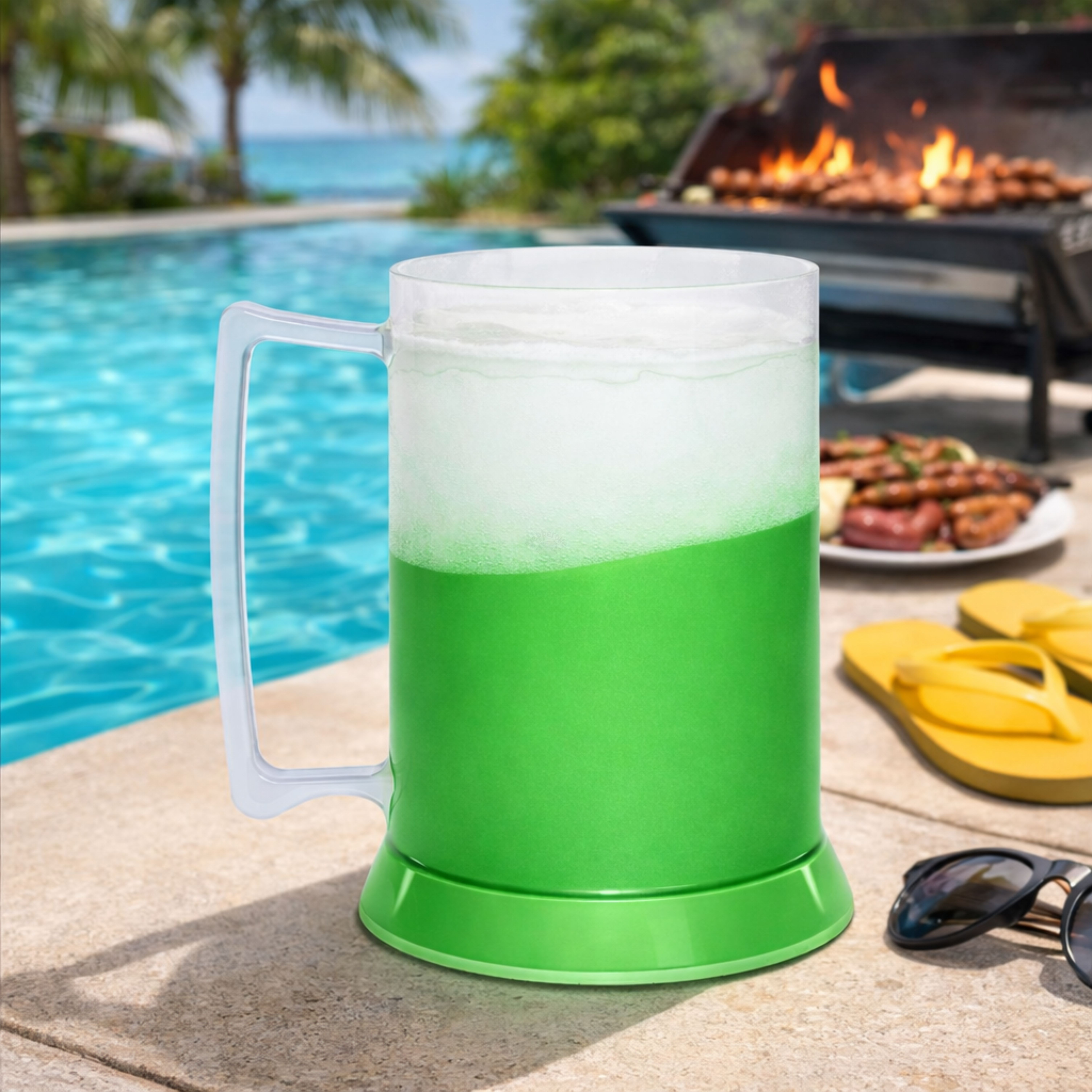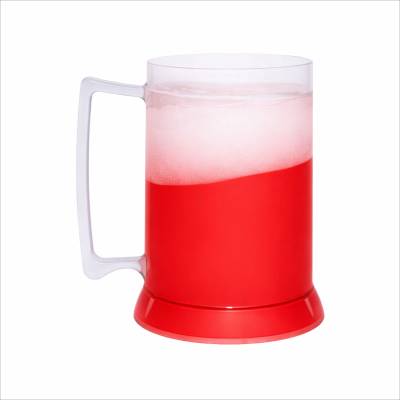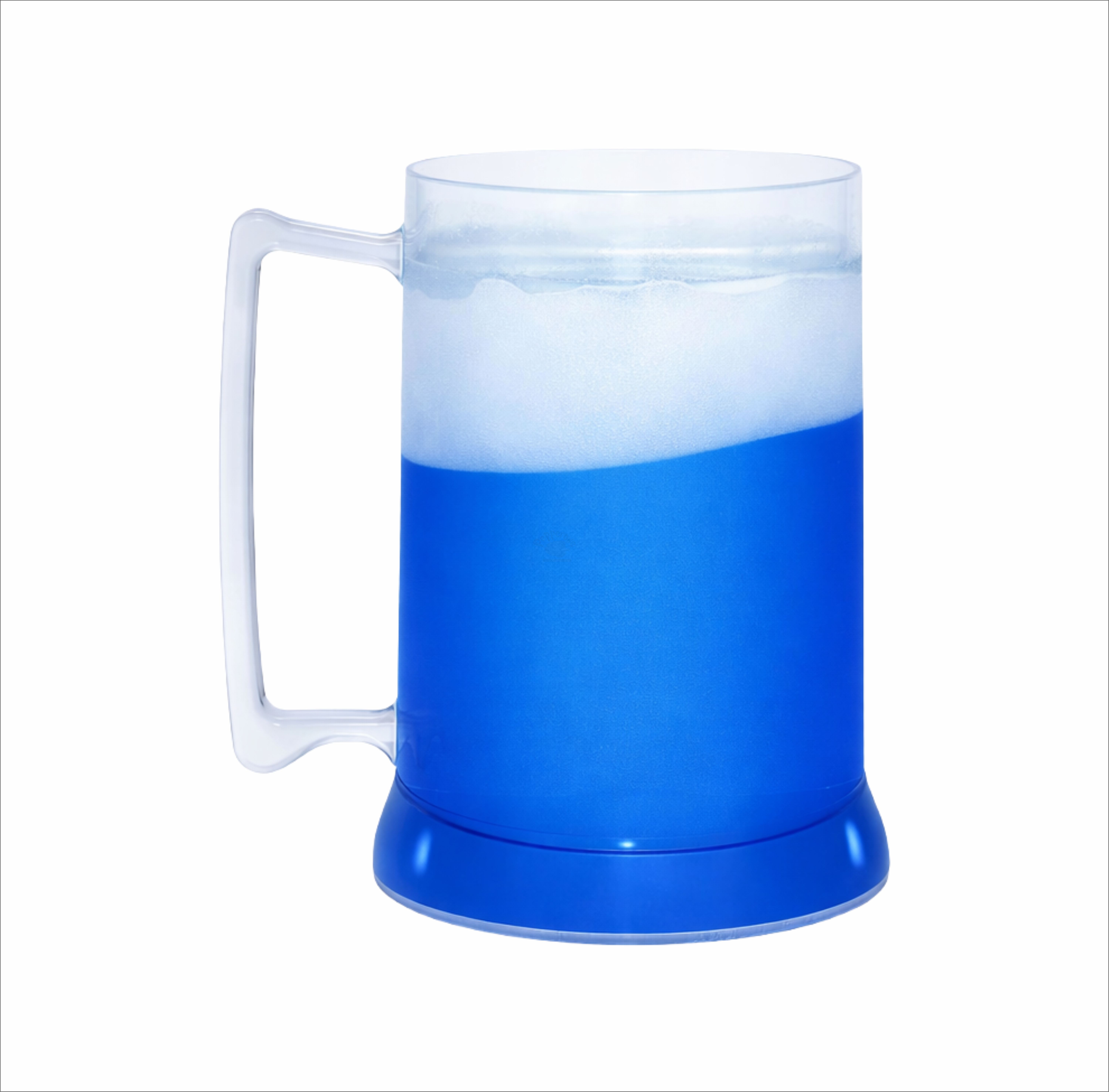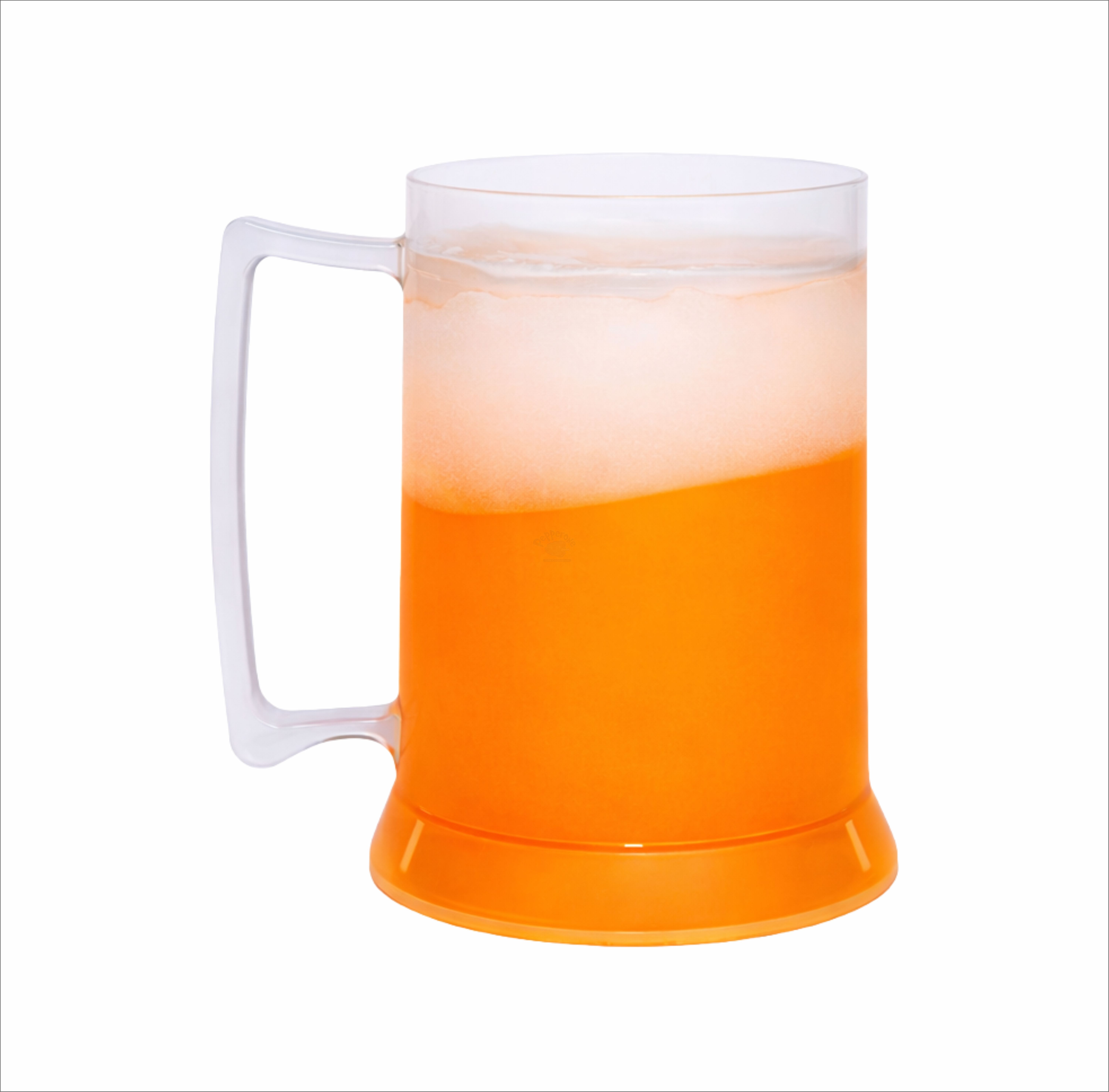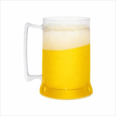 Caneca de chopp gel personalizada 450ml em poliestireno, ideal para manter bebidas geladas por mais tempo. Possui parede com gel interno que ajuda a conservar a temperatura, proporcionando uma experiência diferenciada. Com design moderno e alça ergonômica, é perfeita para eventos, festas e ações promocionais. Permite personalização em silk screen, sendo um brinde corporativo criativo e de alto impacto para destacar sua marca.