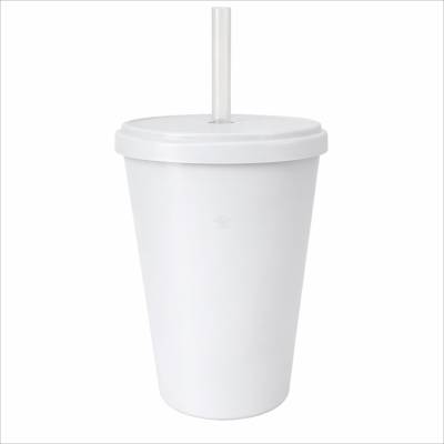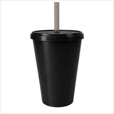 Copo Plástico com Tampa e Canudo 350ml