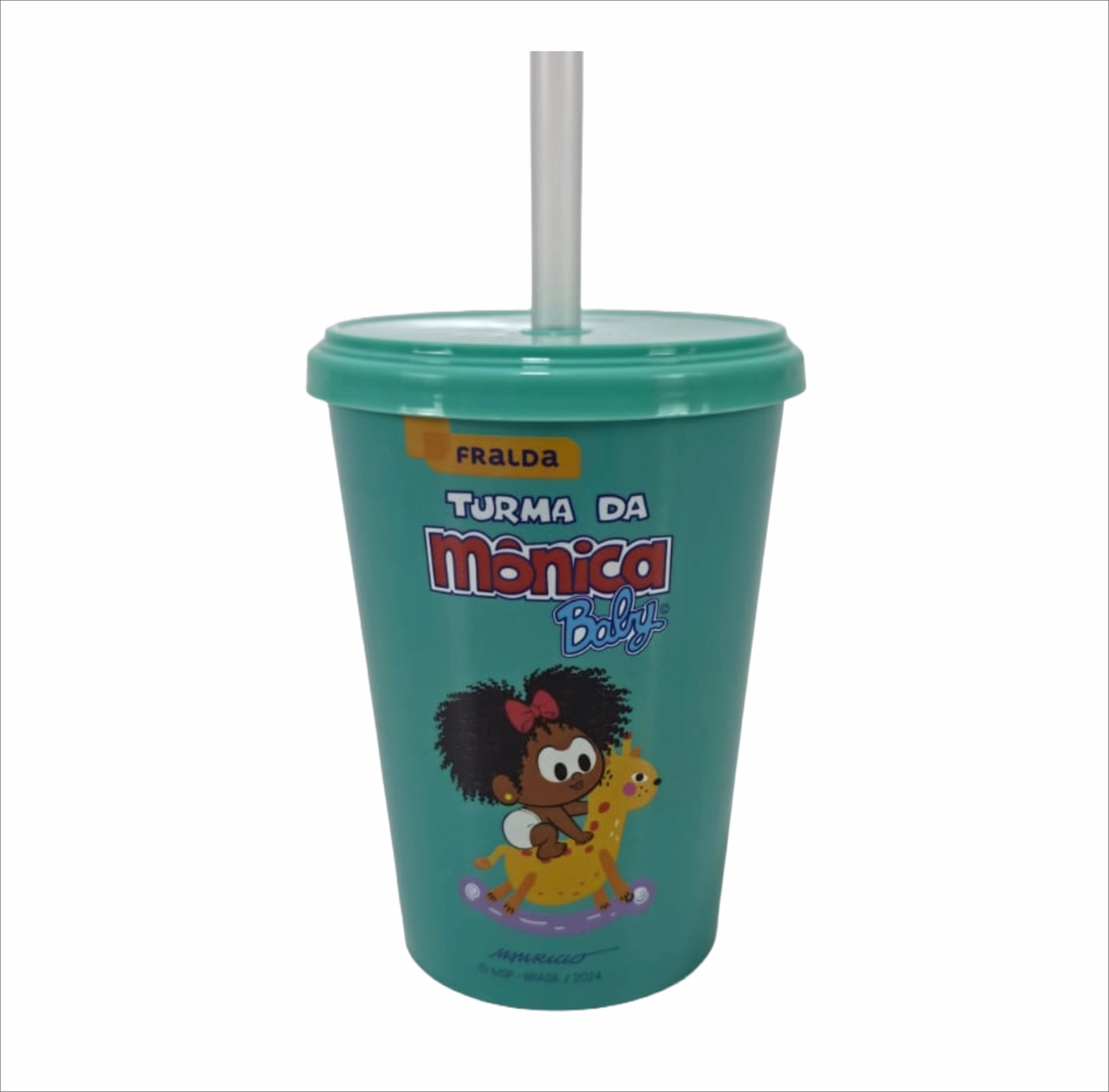 Copo Plástico In Mold Label com Tampa e Canudo 350ml