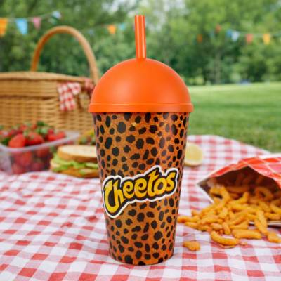 Copo Plástico In Mold Label com Tampa Bola e Canudo 450ml
