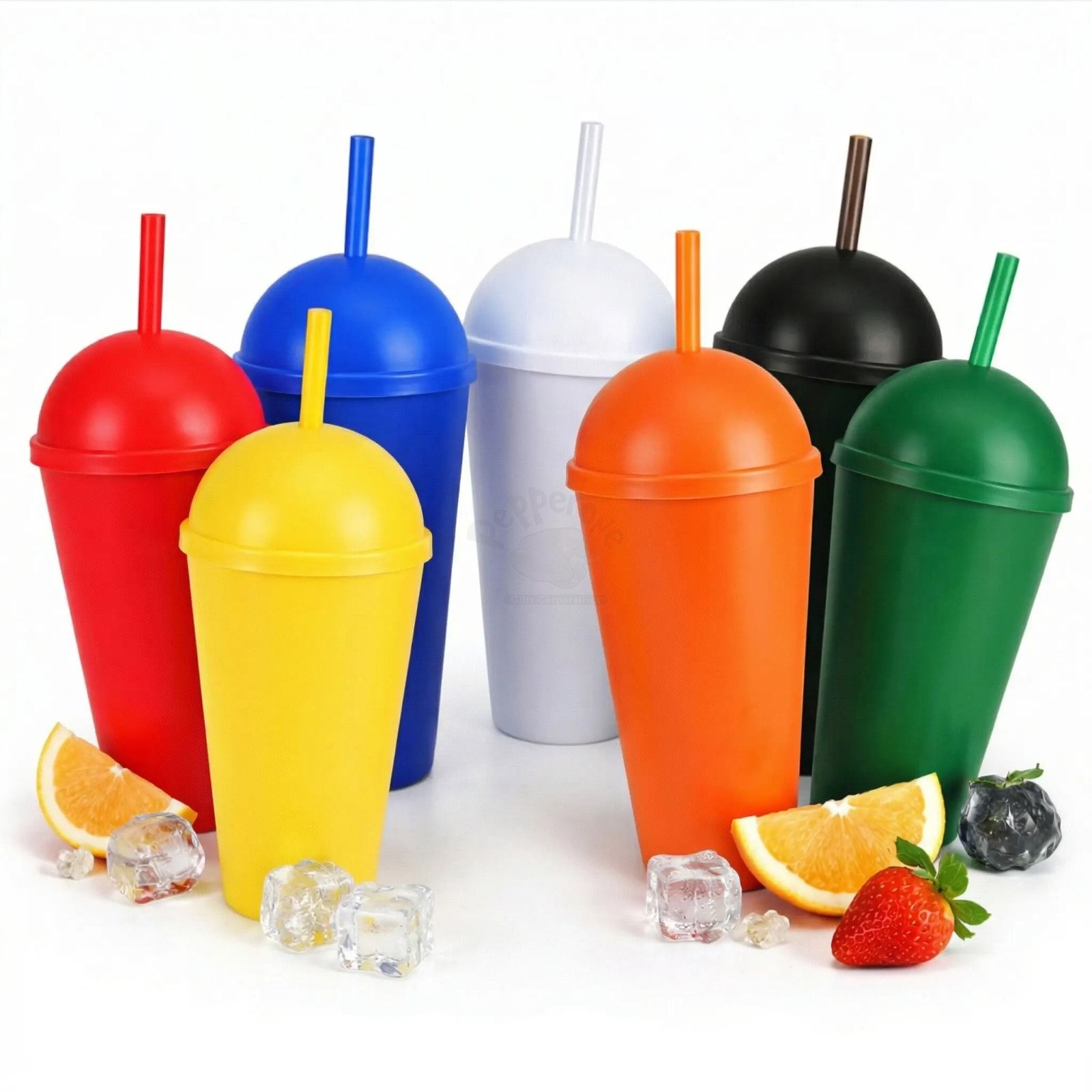 Copo Plástico com Tampa Bola e Canudo 550ml