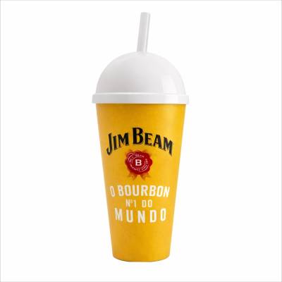 Copo Plástico In Mold Label com Tampa Bola e Canudo 550ml