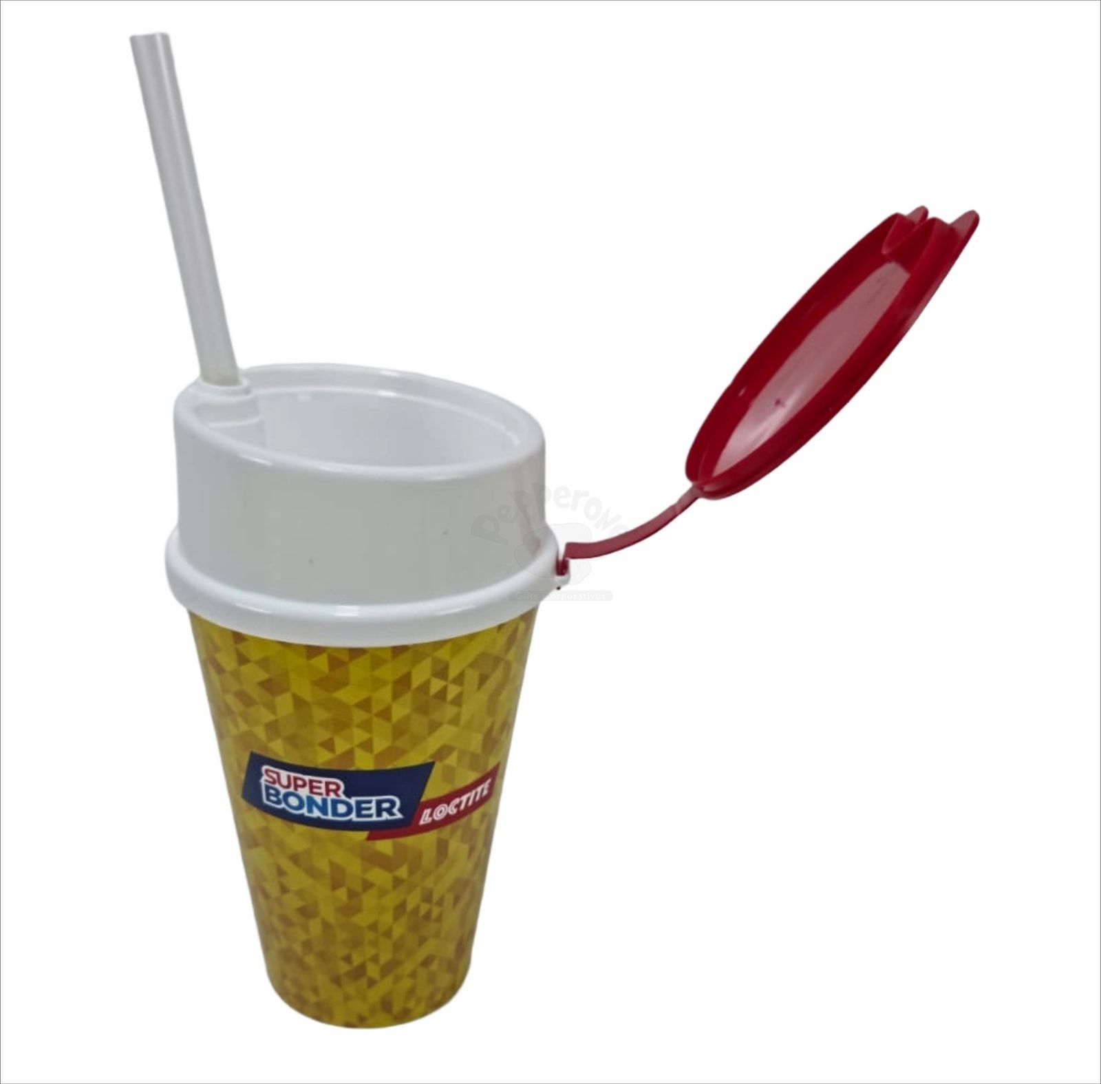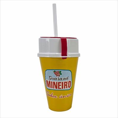Copo Plástico In Mold Label com Tampa Porta Snacks 450ml